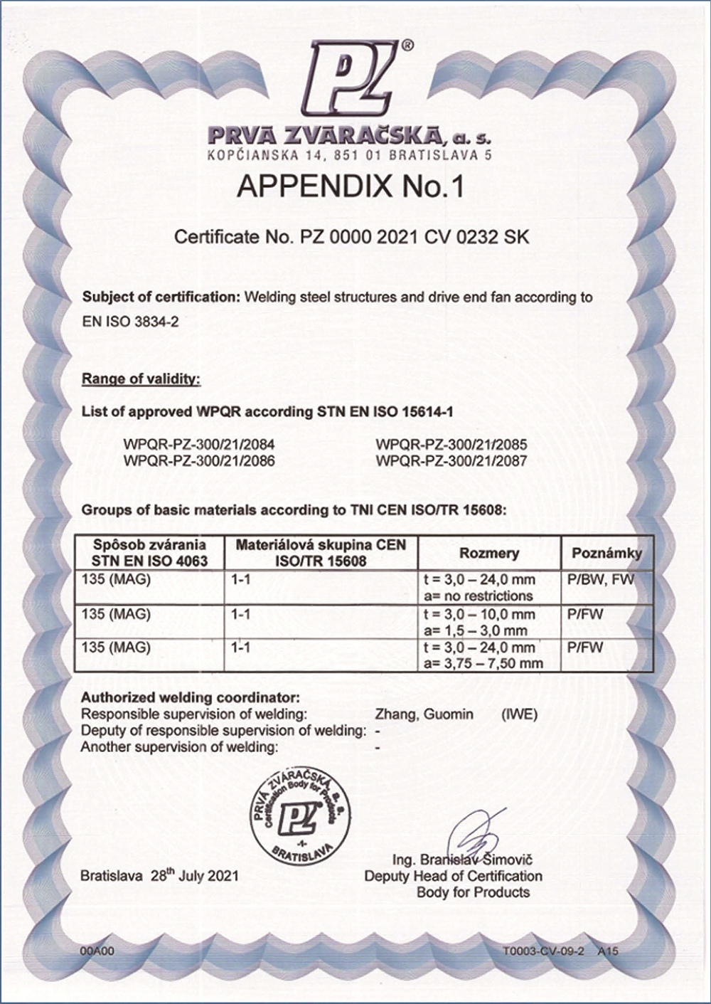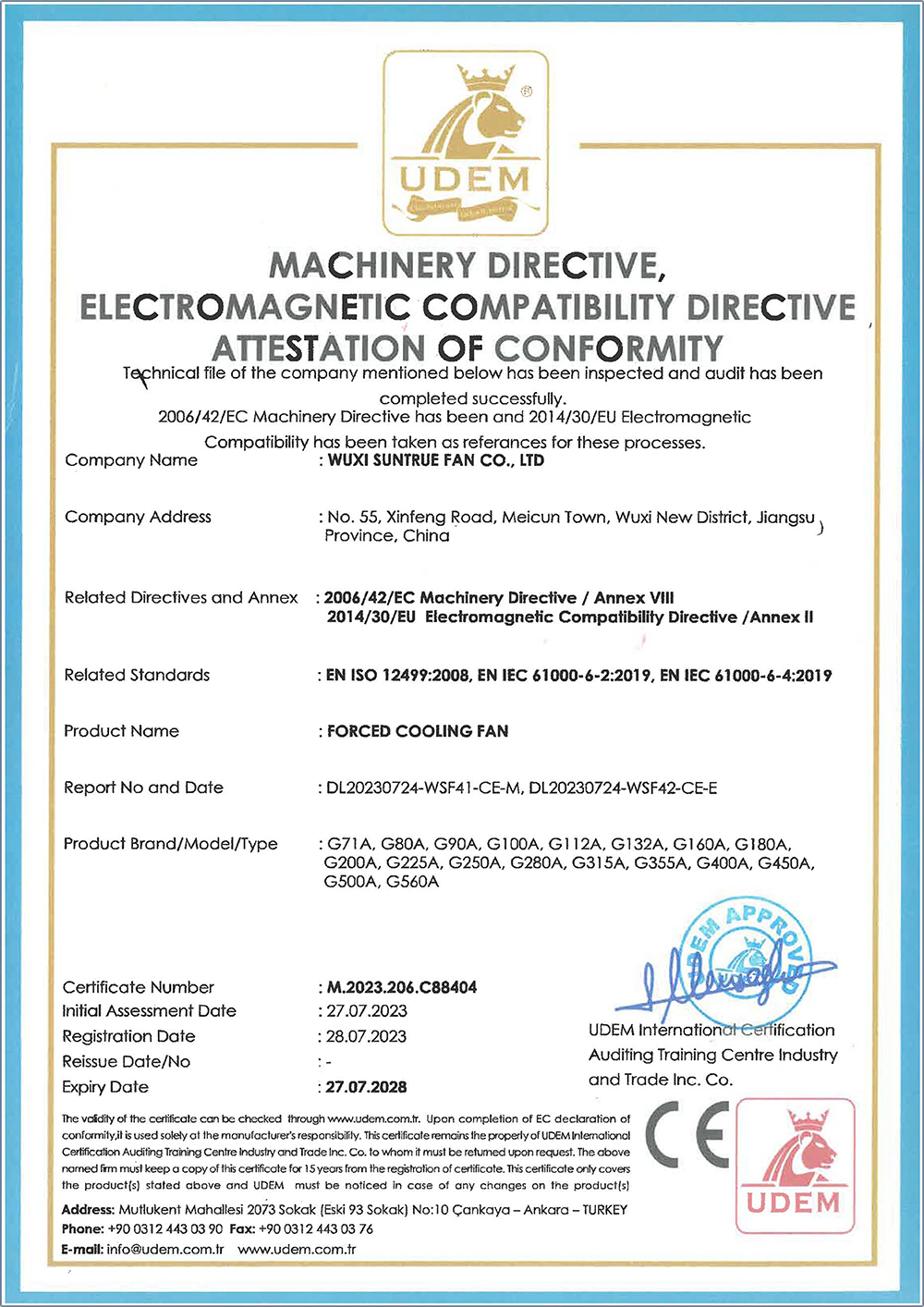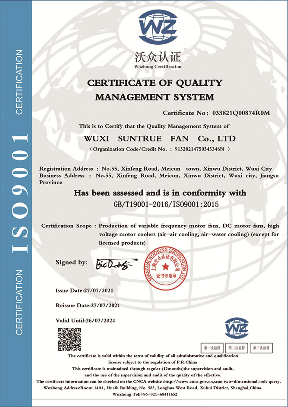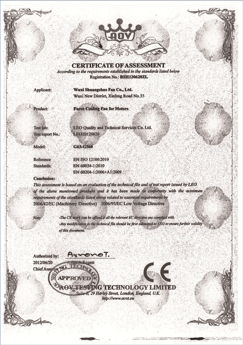 公司经过不断的创新和探索 ,逐渐使本公司的产品达到国内领先水平 ,并已经在开始建立起自己的技术开发和研究中心。公司于2008年参加起草了上海电科所制订的《变频电机用G系列冷却风机技术规范》国家标准,标准号为GB/T22712-2008、公司已经通过了ISO9001:2000质量体系认证,对产品的各个生产过程进行有效控制 ,从而实现产品质量的稳定可靠。公司绝大部分产品与国内外知名电机制造商配套。